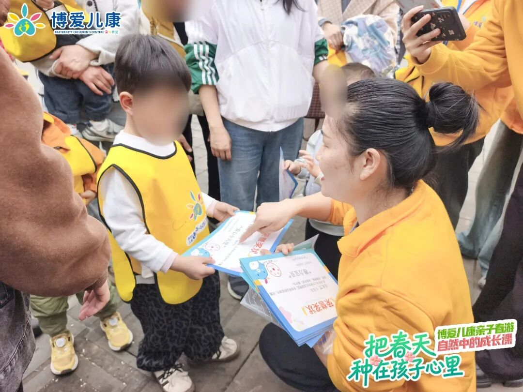 在出发之前,博爱儿康的老师们为每一组大小朋友们准备了精心设计的任务卡,或是探寻艳丽的花朵,或是识别形态各异的绿叶,孩子们一个个都化身“小小探险家”,与陪伴的家长一起,在园区内踏上了一场乐趣十足的探险之旅。